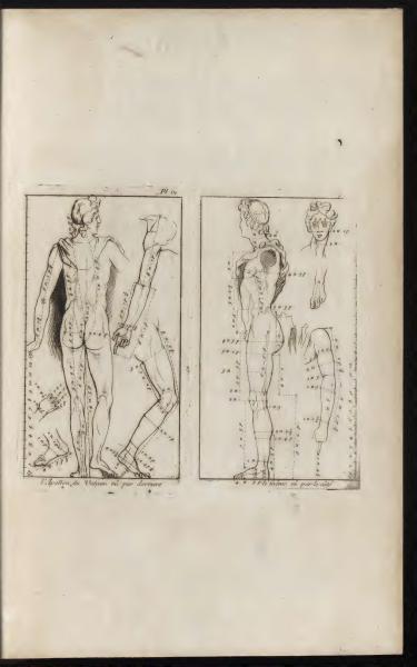 The page features illustrations of "The Apollo of the Vatican" from different angles, with accompanying annotations. These figures serve as instructional models for understanding classical human anatomy. The text indicates the perspectives from which these statues are drawn.