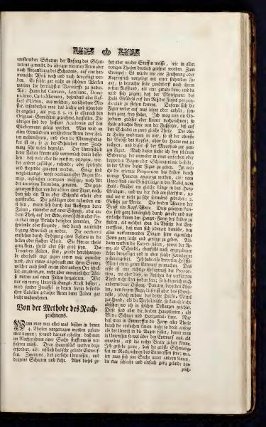The text explains the precise execution required for tracing, emphasizing the importance of clean work and accurate outlines. It contrasts different stages and gives an example involving engraving, with attention to maintaining proportion. It further details methods for ensuring correct proportions and how overemphasis on certain parts should be avoided, incorporating translation notes to clarify historic references.